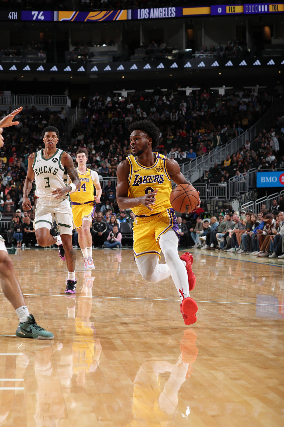 本场比赛,布朗尼-詹姆斯仅出战6分钟,4投0中没有任何数据进账,但正负值为-12。而当他下场之后,湖人在4分钟内轰出一波20-0,一举逆转雄鹿。