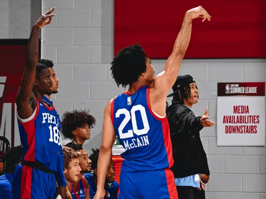 7月22日:NBA夏季联赛中,76人队以103-98击败凯尔特人队。 76人队新秀麦凯恩出战16分钟,12投5中得到15分1篮板4助攻,三分球7投3中,下半场没有上场。...