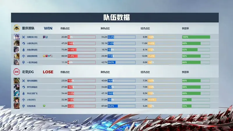 JDG主动入侵蓝区,却被狼队反扑。甄姬得到了王昭君的第一滴血
